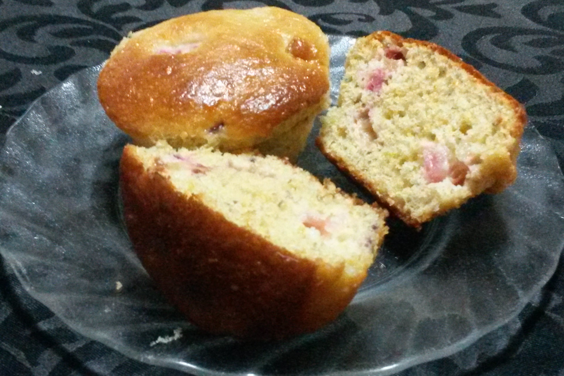 Method: Preheat oven to 180 degrees C and grease muffin trays. Combine flour, baking powder and soda, salt and rosemary in bowl. In mixmaster, add all other ingredients except rhubarb and whisk until sugar dissolves. Combine wet and dry ingredients and rhubarb and fold until just combined. Bake for 18 to 22 minutes (fan forced oven). Cool in tray for 10 mins |