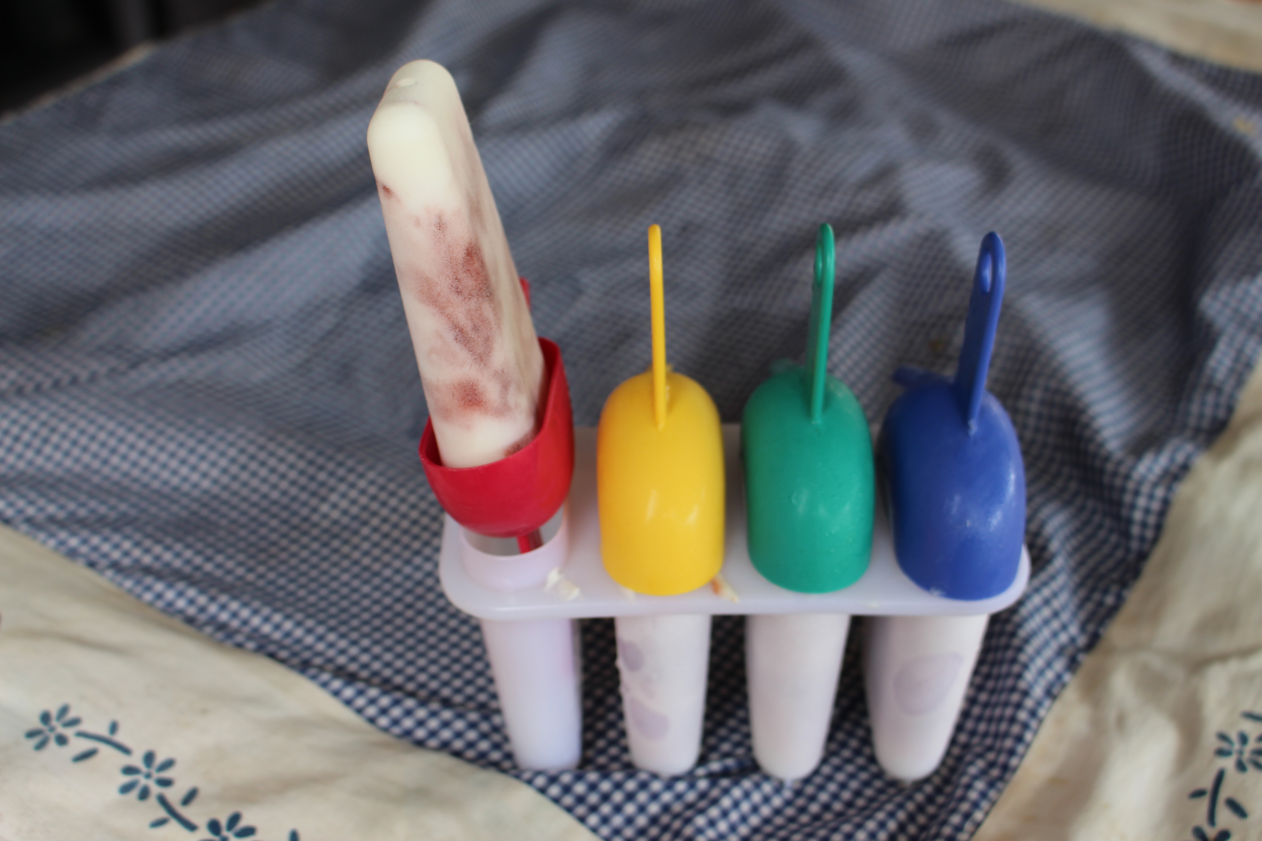 Method: Place teaspoons of yoghurt into the iceblock moulds, then add a layer of rhubarb and repeat the process until the molds are full Using a skewer, swirl the rhubarb through the yoghurt. Put the sticks in the molds and then freeze for at least 5 hours. You can experiment with greek yoghurt or other flavoured yoghurts as well. |